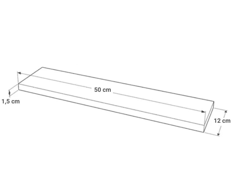 - 3 repisas 50 cm x 12 cm x 1,5 cm