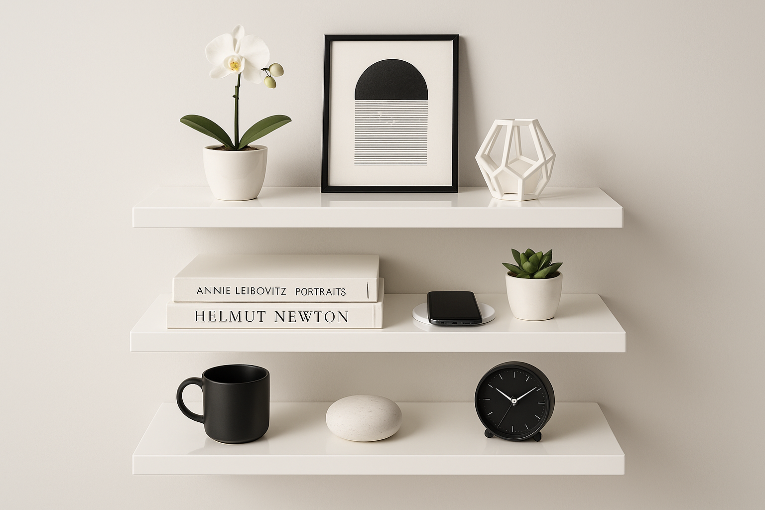 Cada repisa soporta hasta 12 kg de peso estático distribuido. Uso recomendado: decorativo.